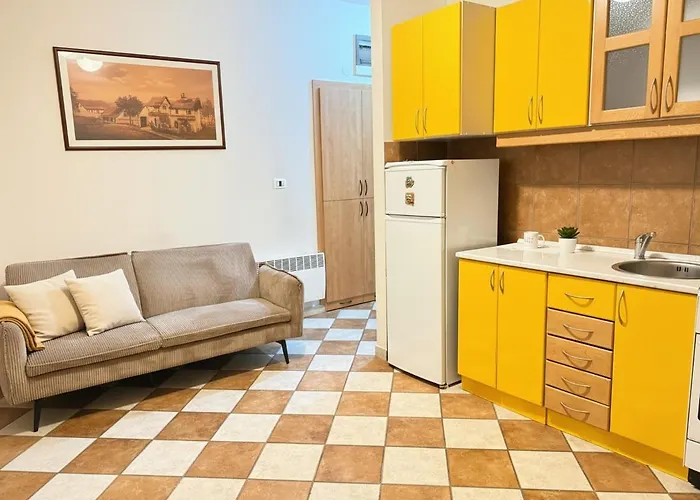 האורחים יכולים להכין מנות ב אזור מטבחון מאובזר. דירה זה נמצא במרחק של 5 ק"מ על שדה תעופה פודגוריצה.